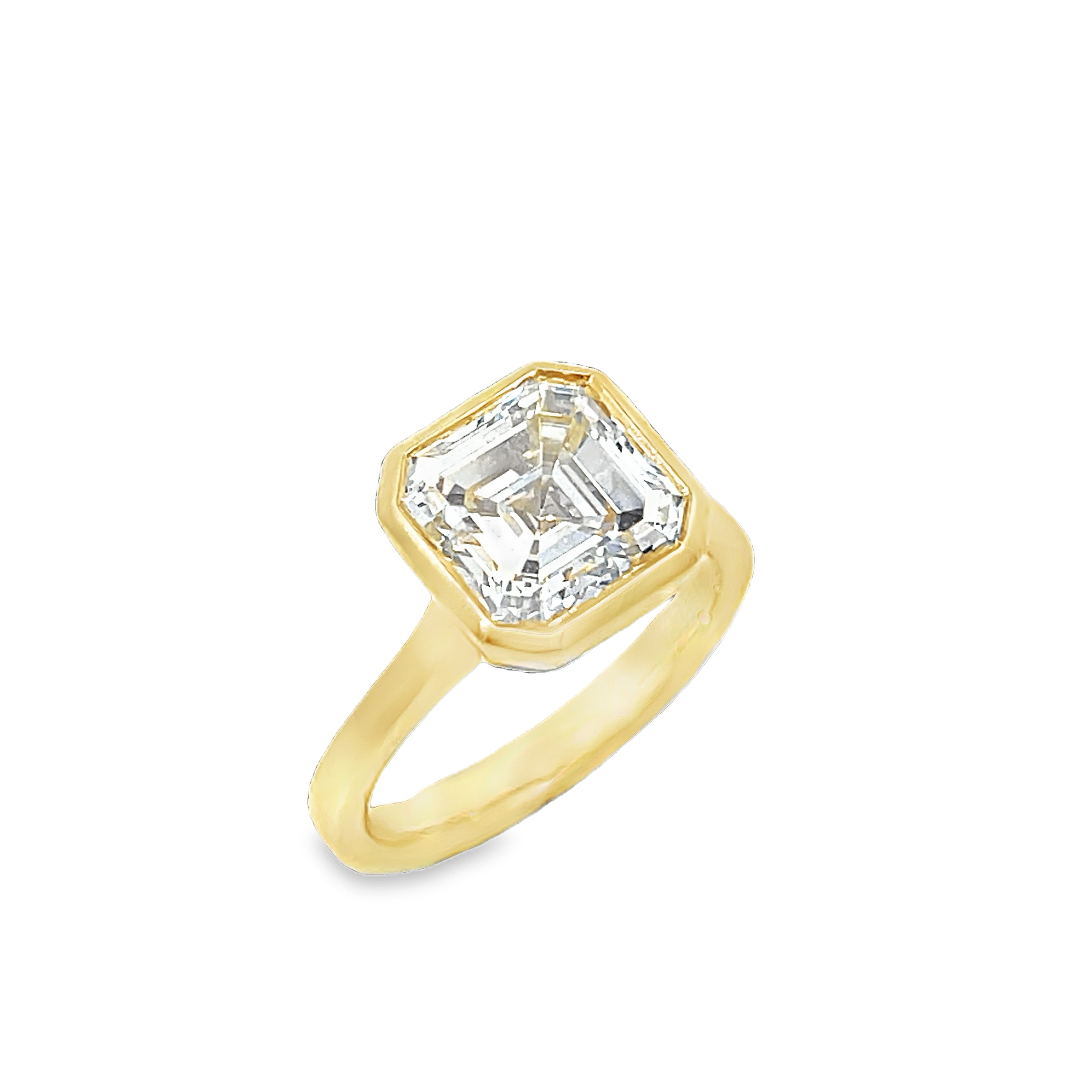 This stunning ring features a dazzling asscher cut diamond at 4.15cts. With fine polished 18k Yellow gold, this piece is perfect for both engagement or fashion purposes. -18k Yellow gold-Asscher cut diamond, 4.15ct-Size 6.5, Contact for sizing optionsItem# 100-2000038