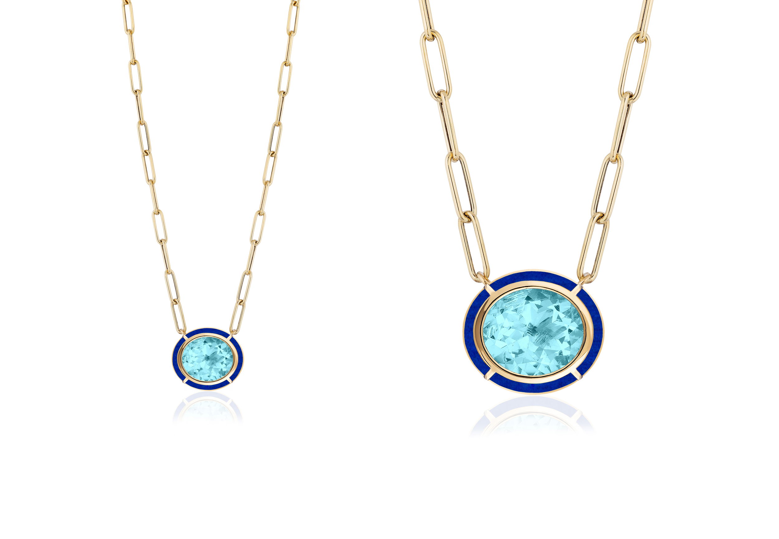 Introducing the 'Melange' Blue Topaz Pendant with Lapis Inlay—a stunning fusion of color and craftsmanship. Elevate your style with this eye-catching piece, a harmonious blend of sophistication and modern design.-18K Yellow gold-Blue topaz, 7.94ct-Lapis inlay, 1.04cts-Length, 18"Item# 230-2000022