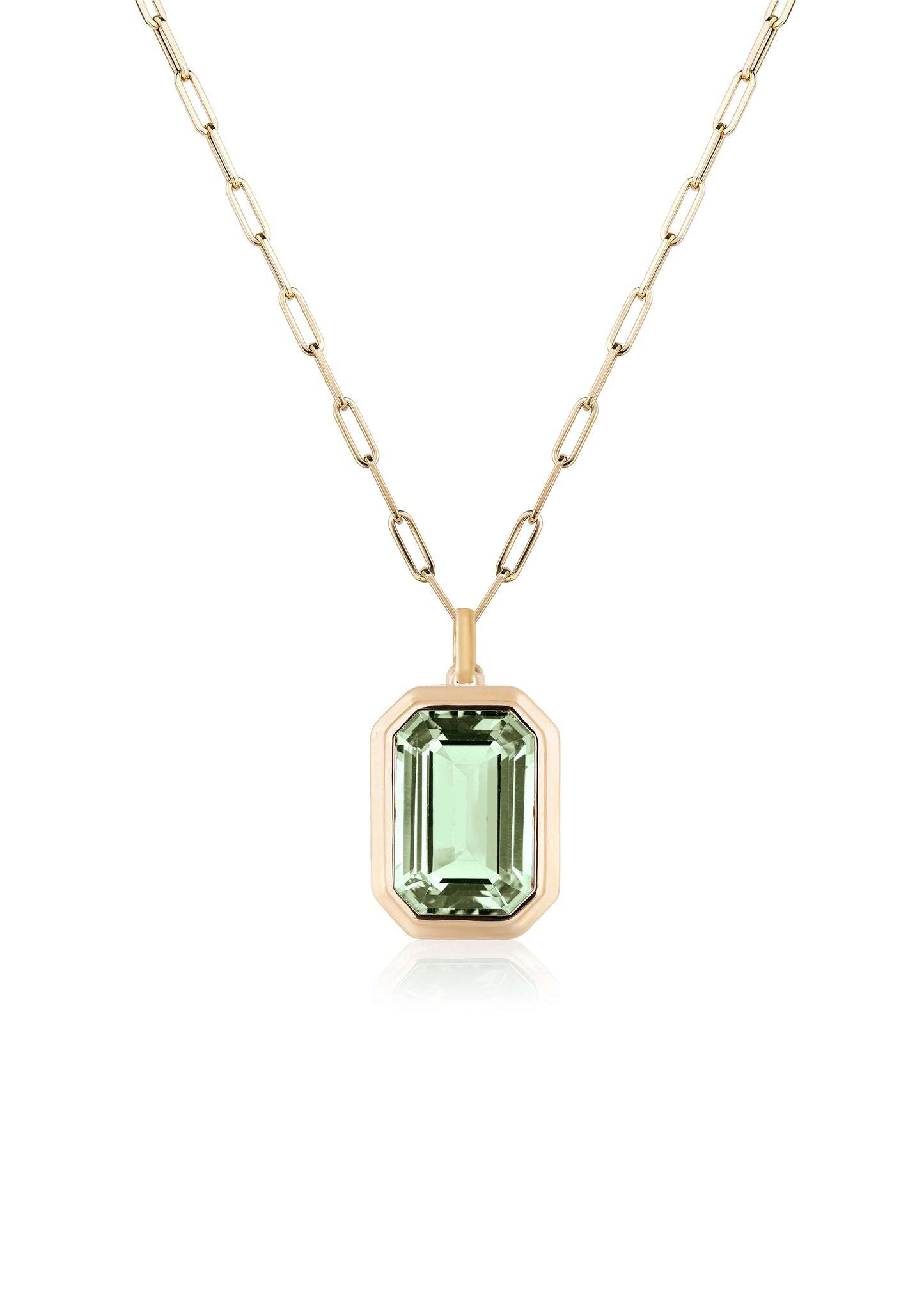 Elevate your jewelry collection with the ‘Manhattan’ Prasiolite Bezel Pendant—a sleek statement piece. Whether paired with formal attire or a casual ensemble, the ‘Manhattan’ pendant delivers a touch of urban sophistication and timeless glamour.-18K Yellow gold-Prasiolite, 6.91ct-Length, 16"Item# 230-2000024