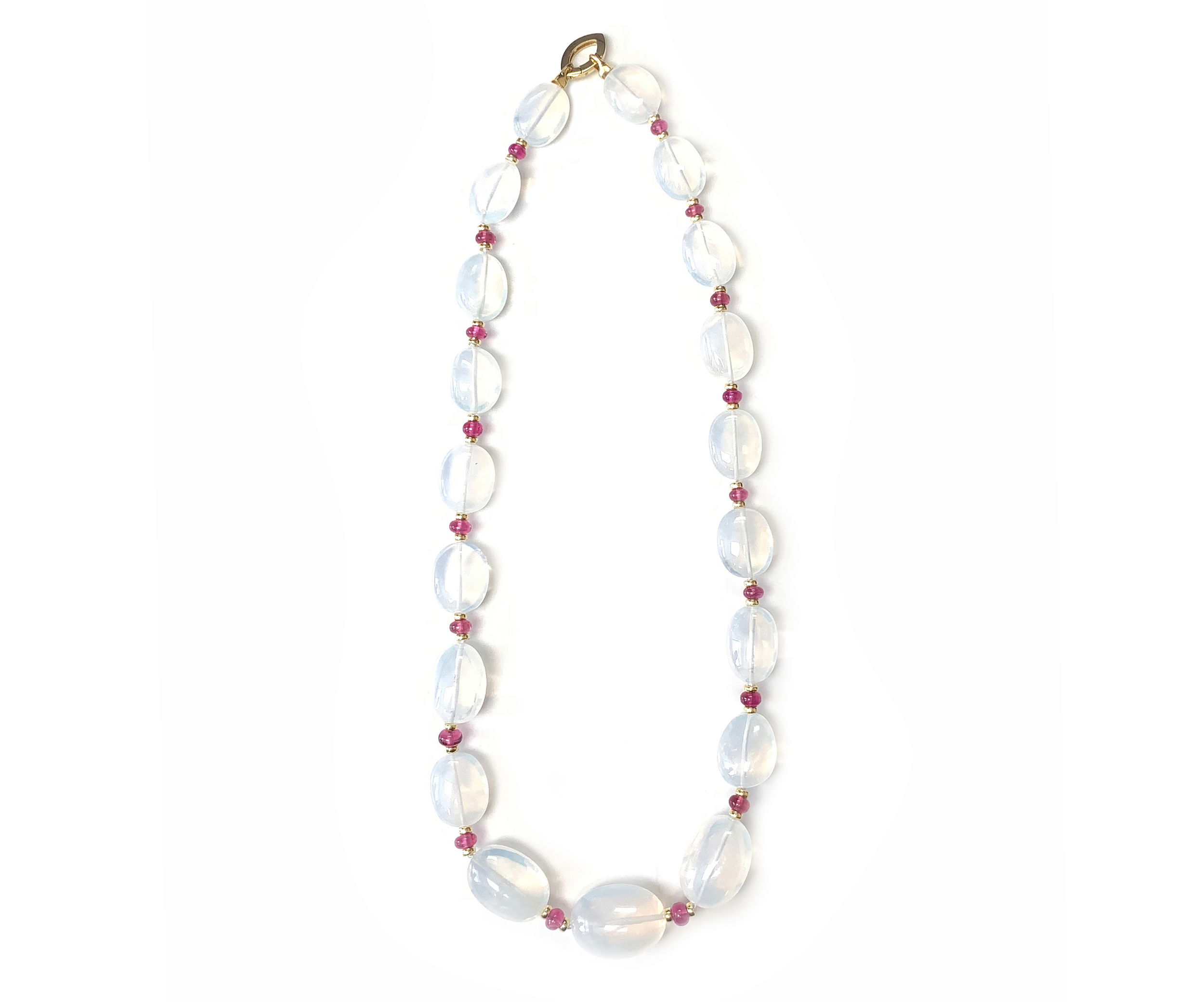 'BEYOND' Tumbled Moon Quartz and Rubellite Beaded Necklace | Naifeh Fine Jewelry