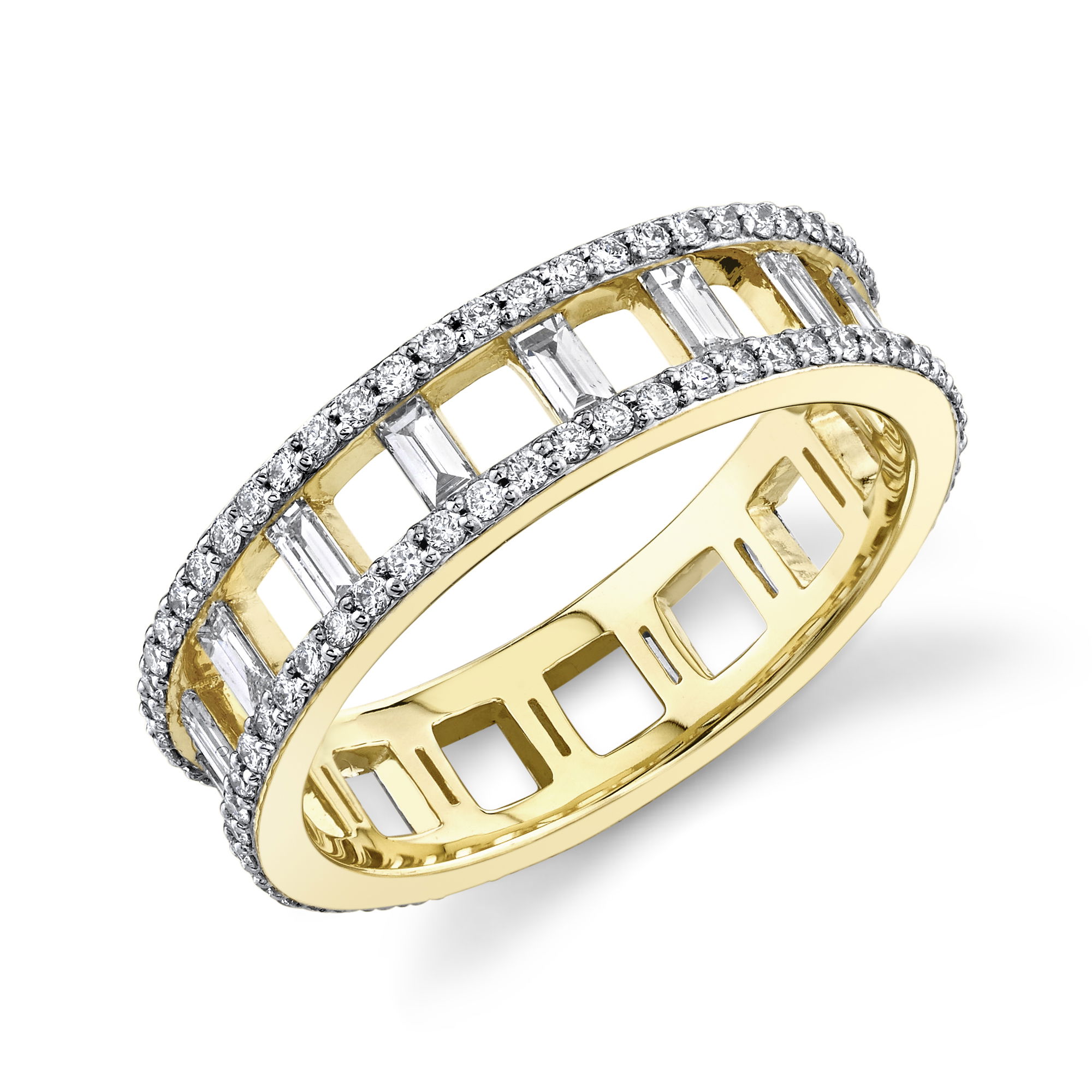 Great for stacking or as a stand alone, the Baguette Diamond Ring is a great addition to any jewelry collection. Add a touch of sparkle to your outfit and turn the everyday into something special. -18K yellow gold-Baguette diamonds, 0.7cts-Round diamonds, 0.54ctsContact for sizing optionsItem# 804-2000471