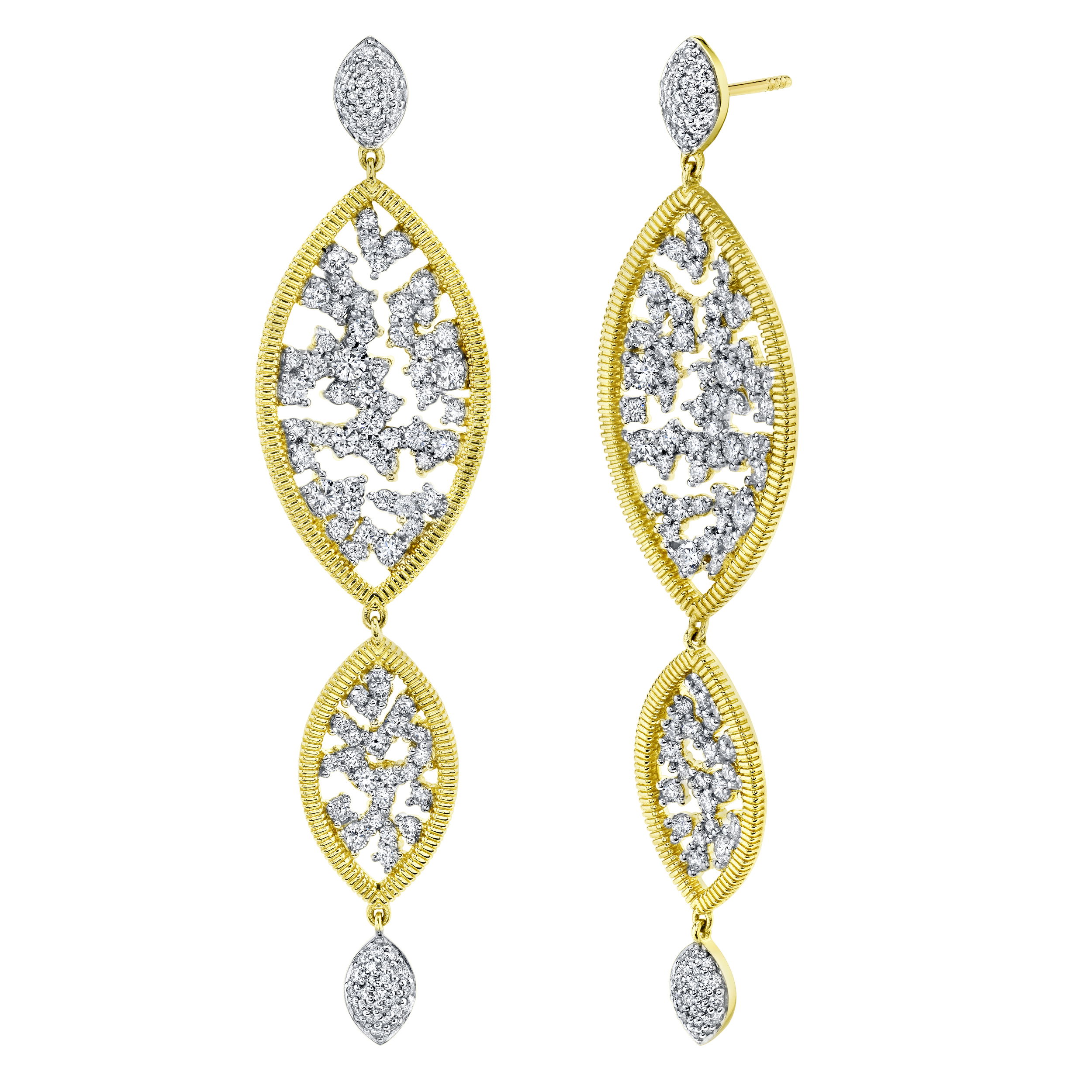 Elevate your style with these Marquise Earrings, exquisitely crafted to command attention. Whether paired with evening attire or elevating everyday ensembles, these earrings promise to be a standout addition to your jewelry collection.-18K Yellow gold-Round diamonds, 3.07ctsItem# 805-2000671