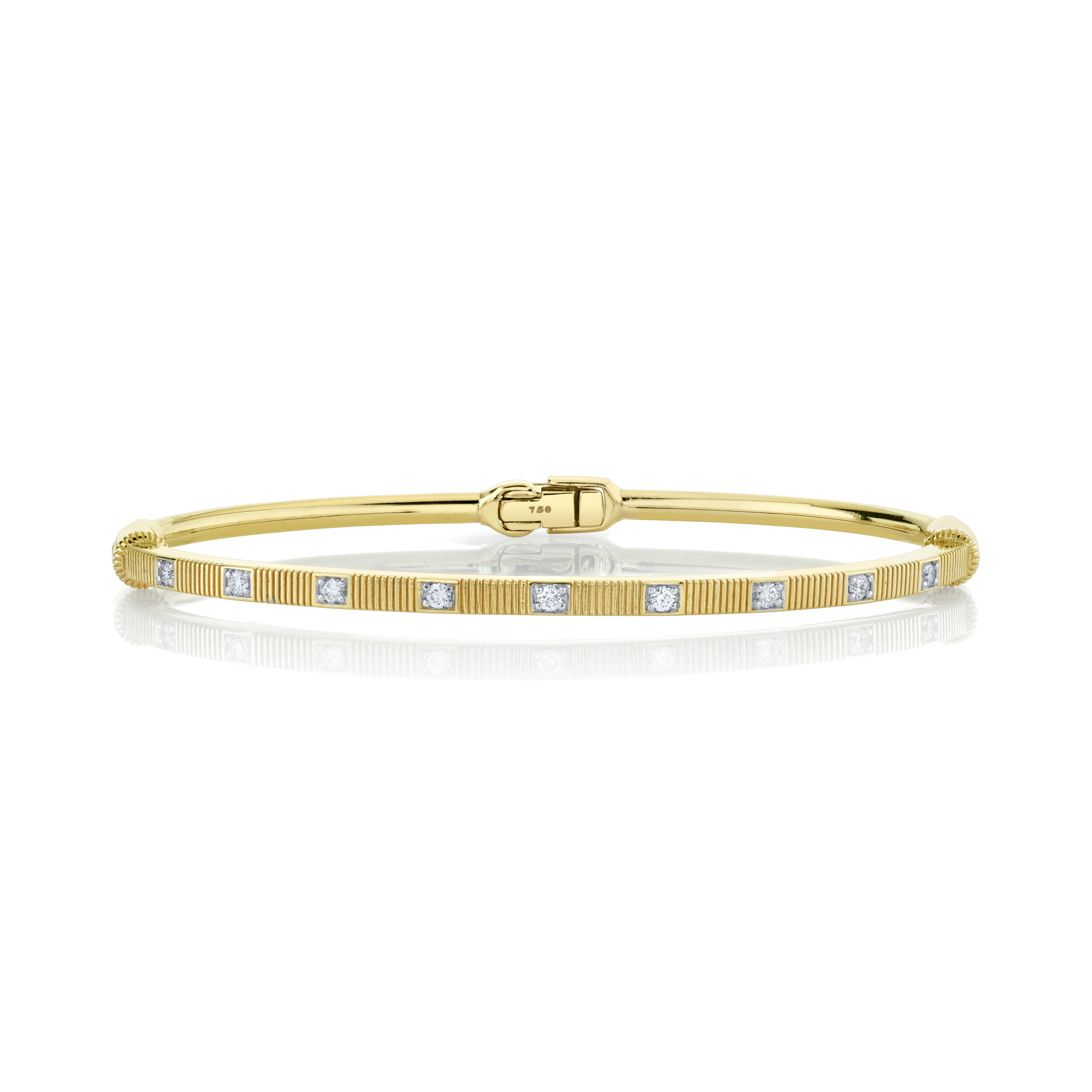 This piece boasts diamonds and strie detailing, creating a beautiful accent piece to fit any style.-18k Yellow gold-Round diamonds, 0.29ctsItem# 808-2000264