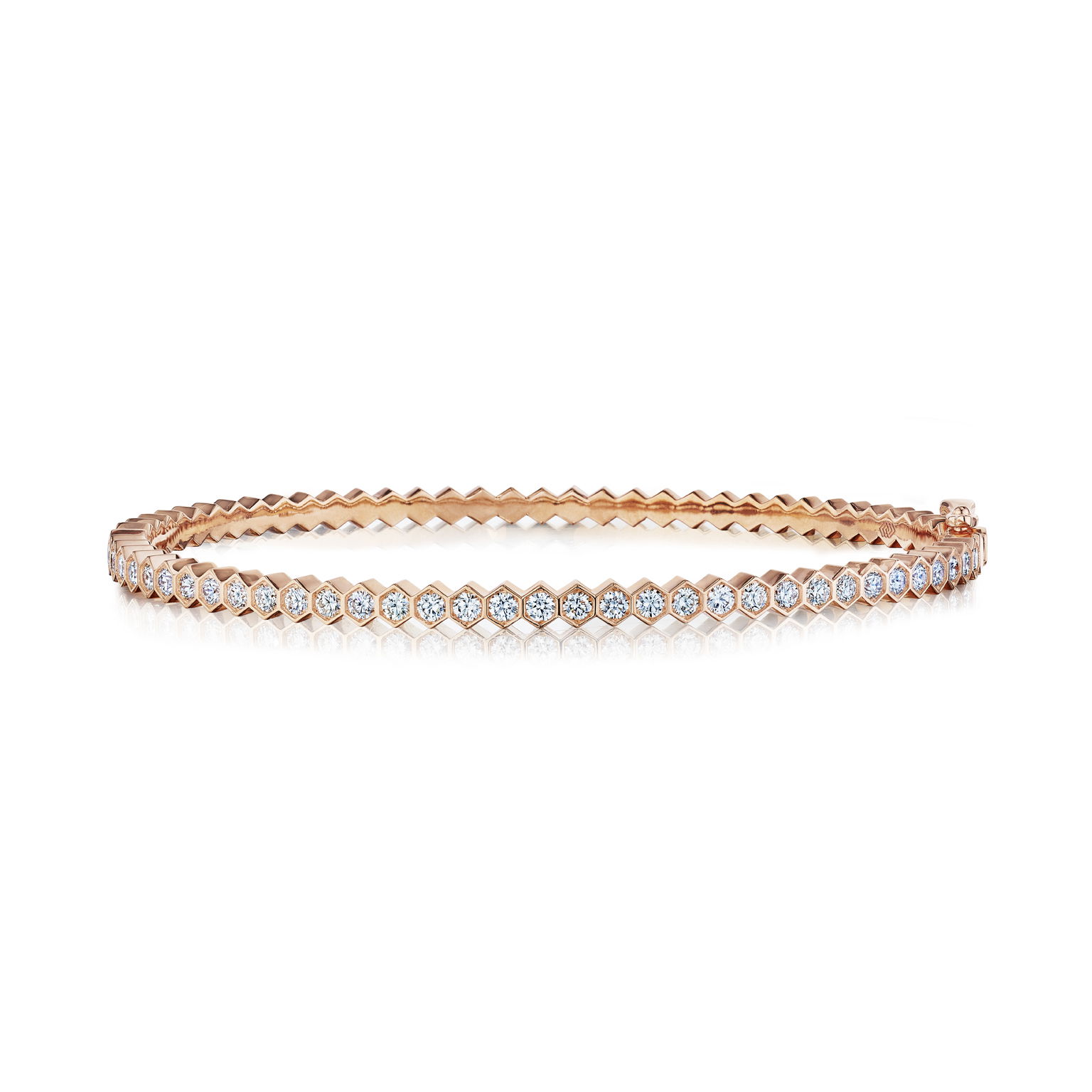 This hexagonal diamond bangle in 18k yellow gold blends clean geometric lines with refined sparkle for a modern yet timeless look. Crafted to perfection, it delivers effortless sophistication whether worn alone or layered.-18k Yellow gold-Hexagonal diamonds, 1.00ctsItem# 808-2000383
