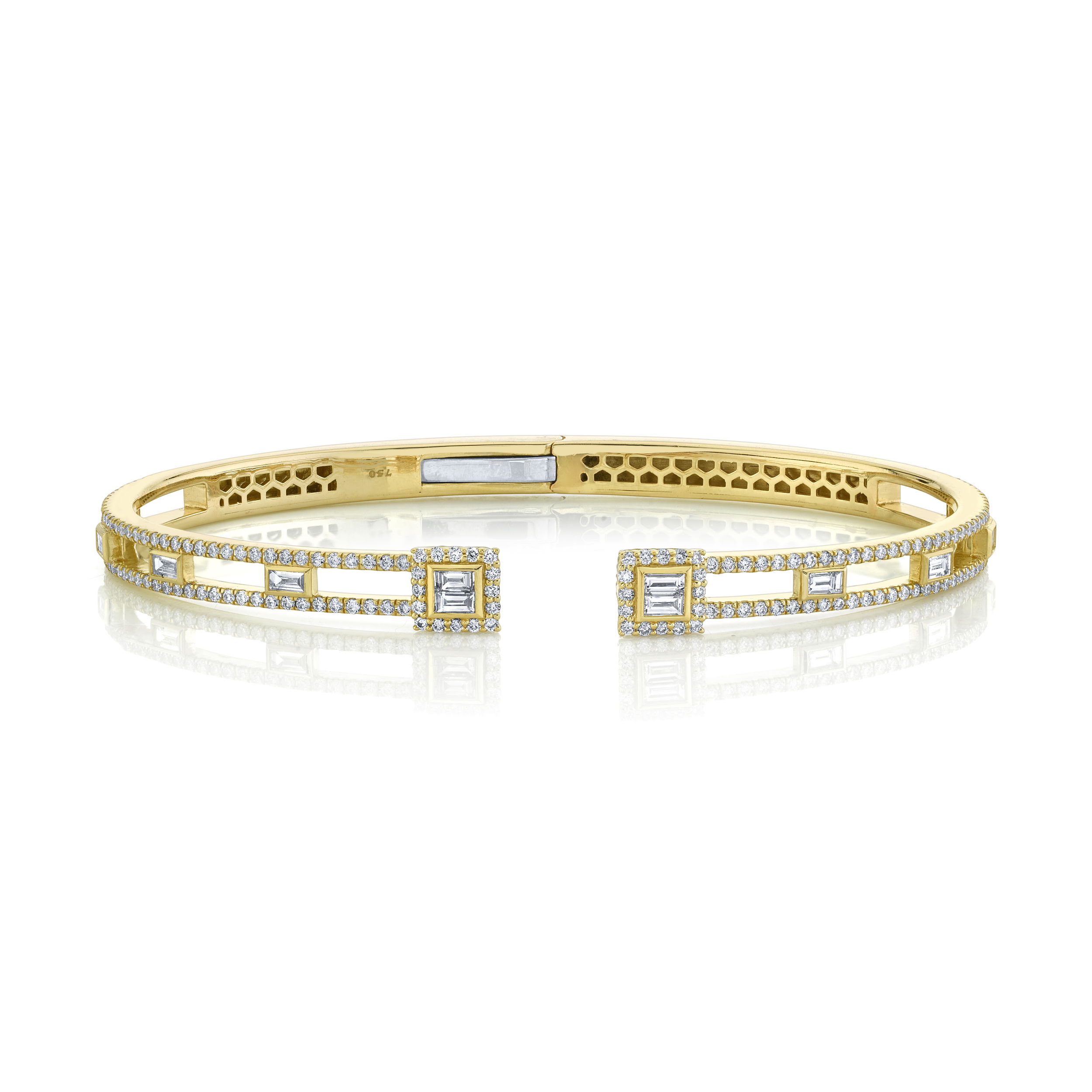 Elevate your everyday style with our Open Baguette Bracelet, a sleek and modern accessory perfect for stacking or wearing solo. Ideal for layering or letting it shine alone, the Open Baguette Bracelet is your new must-have for statement stacking.-18K Yellow gold-Baguette diamonds, 0.56cts-Round diamonds, 0.98ctsItem# 808-2000407
