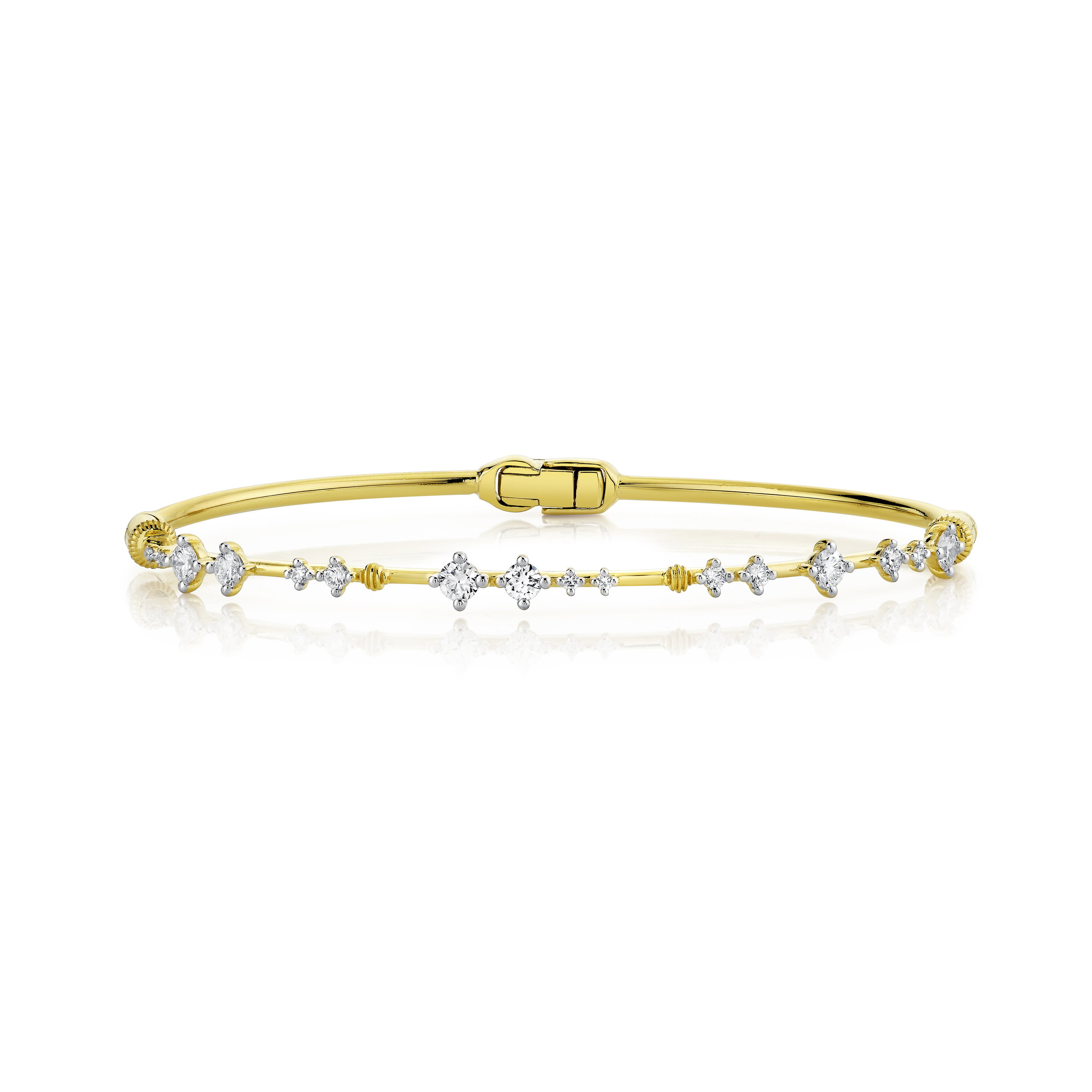 The perfect addition for a bracelet stack or as a stand alone, the Confetti Diamond Bracelet adds a touch of flair to any ensemble. Understated but never unnoticed, you will be reaching for this piece again & again.-18K Yellow gold-Round diamonds, 0.76ctsItem# 808-2000416