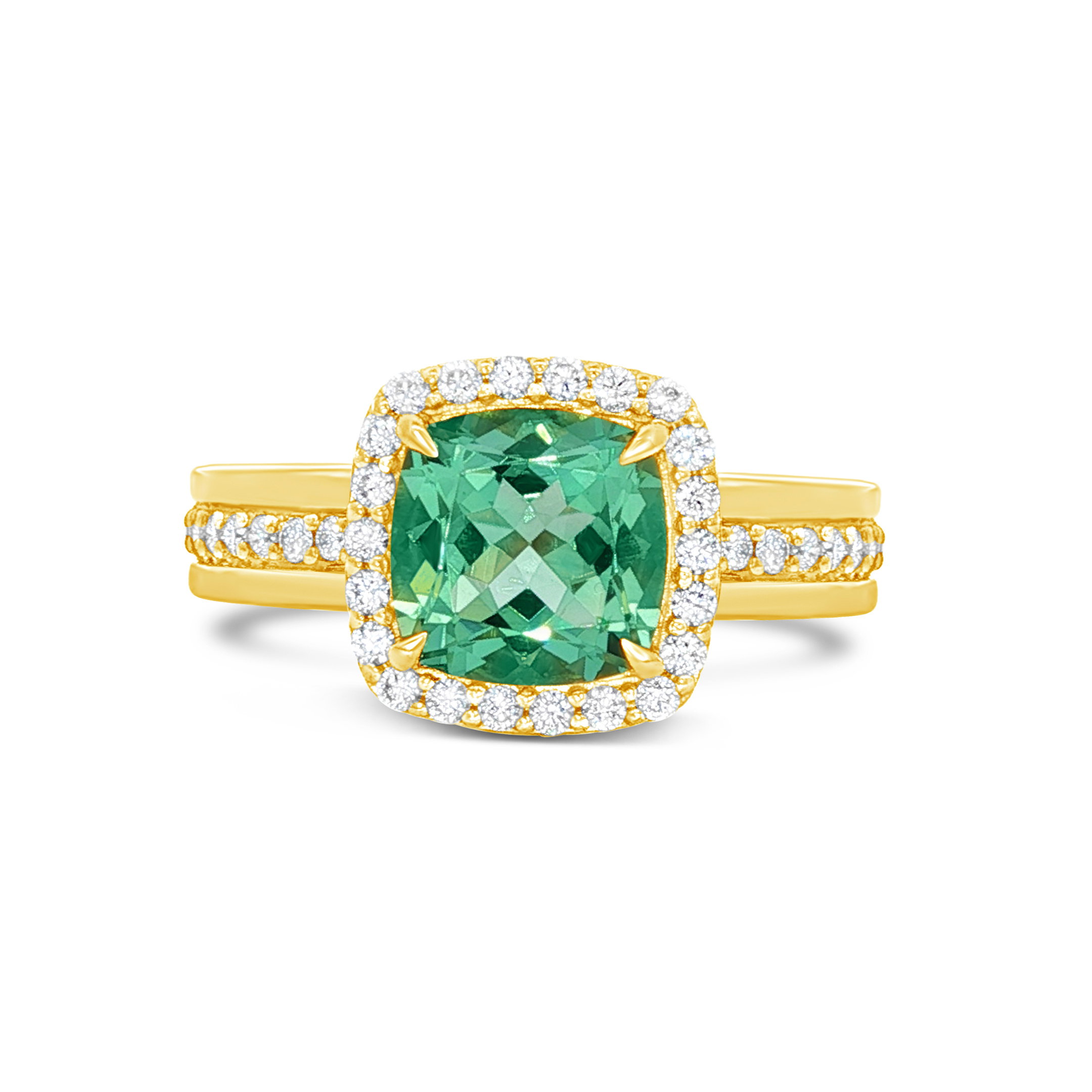 This 18k yellow gold ring features a green beryl at its center, accented with diamonds for a soft touch of light. It’s a piece that feels just as right every day as it does for special moments.-18k Yellow gold-Green Beryl, 1.79ct-Diamonds, 0.38ctsItem# ND-Ring-00039