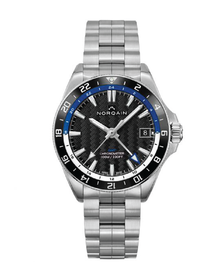 Adventure NEVEREST GMT Steel Steel Bezel Black Ceramic Ring Black Dial Blue & White GMT Ring Satined Steel Bracelet41MMThe Adventure NEVEREST collection is a line that represents NORQAIN’s ambitious drive, passion for new challenges and never-resting spirit. These timepieces are stylish and rugged. With the brand’s partnership with the Butterfly Help Project, ten per cent of the earnings from the sales of Adventure NEVEREST watches help families of Sherpas who have lost their lives in the Himalayan mountains and give their children access to education.Item# time-00165