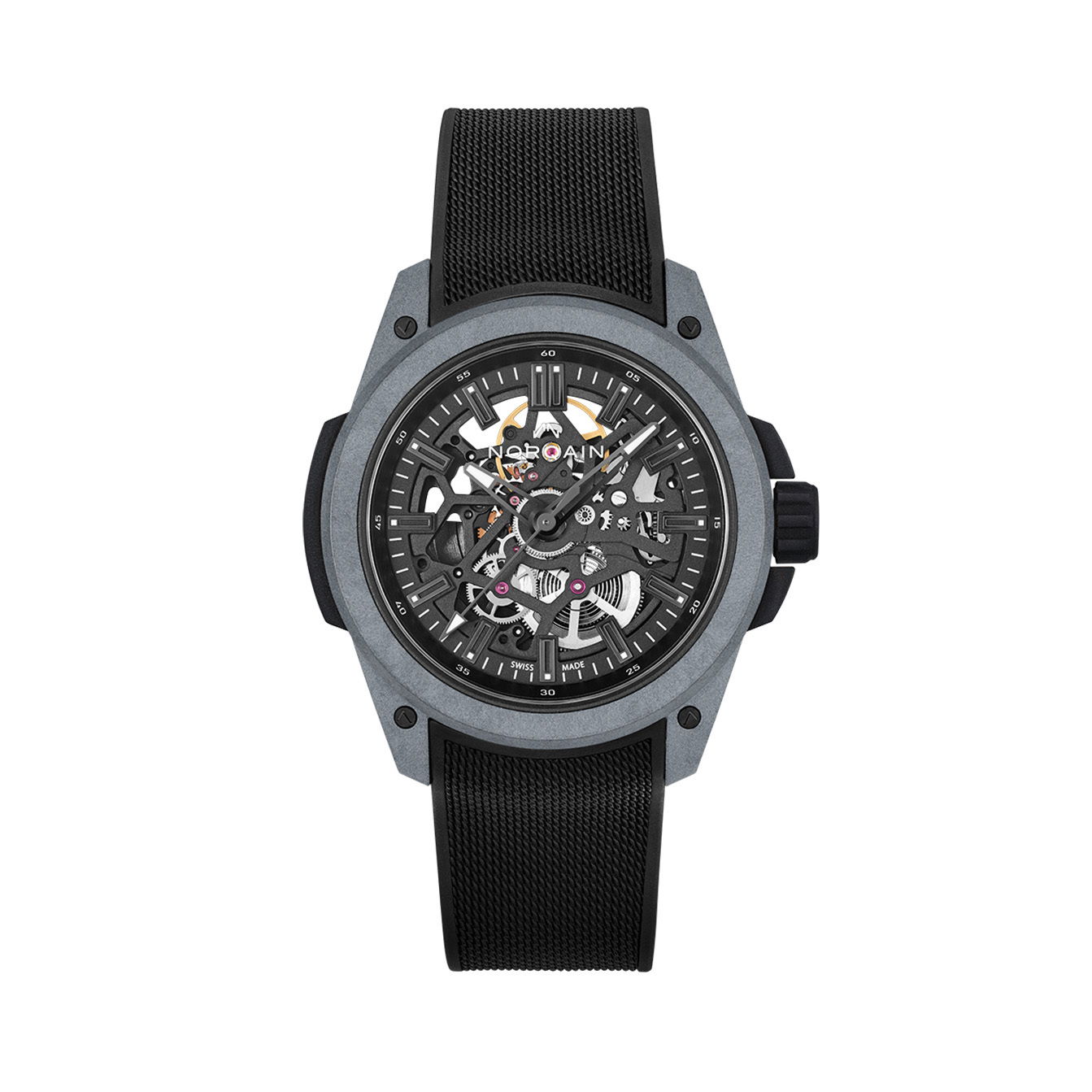 The NORQAIN Independence Wild ONE, made with NORQAINS proprietary NORTEQ carbon fibre material, is the ultimate sports watch. Six times lighter than Steel and 3.5 times lighter than titanium with water resistance to a depth of 200 metres, it is robust enough for virtually any activity on land or water. The Wild ONE has been designed in collaboration with Jean-Claude Biver, the NORQAIN team and the best Swiss suppliers.-Strap: Black Mesh RubberItem# time-00193