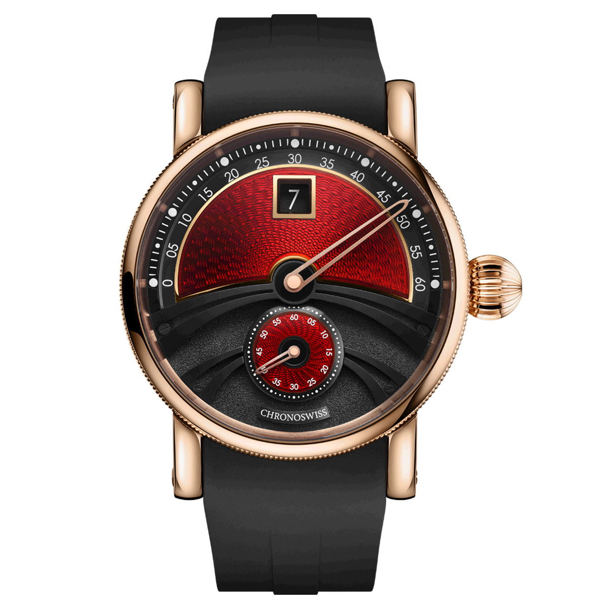 The Delphis Dracula melds timeless elegance with the supernatural. Featuring a hand-guilloched, blood-red fire enamel dial on an 18ct gold curved surface, this 42mm marvel is a true collector's piece. Housed in an exquisite wooden coffin box, it embodies the essence of Dracula's immortal allure and exceptional craftsmanship. A 42mm masterpiece featuring red enamel & gold, crafted with supernatural allure. An immortal creation for collectors who crave rarity & legend.-Water resistance: 100 M / 10 ATM-Diameter: 42 mm-Power reserve: 55 HItem# time-00234